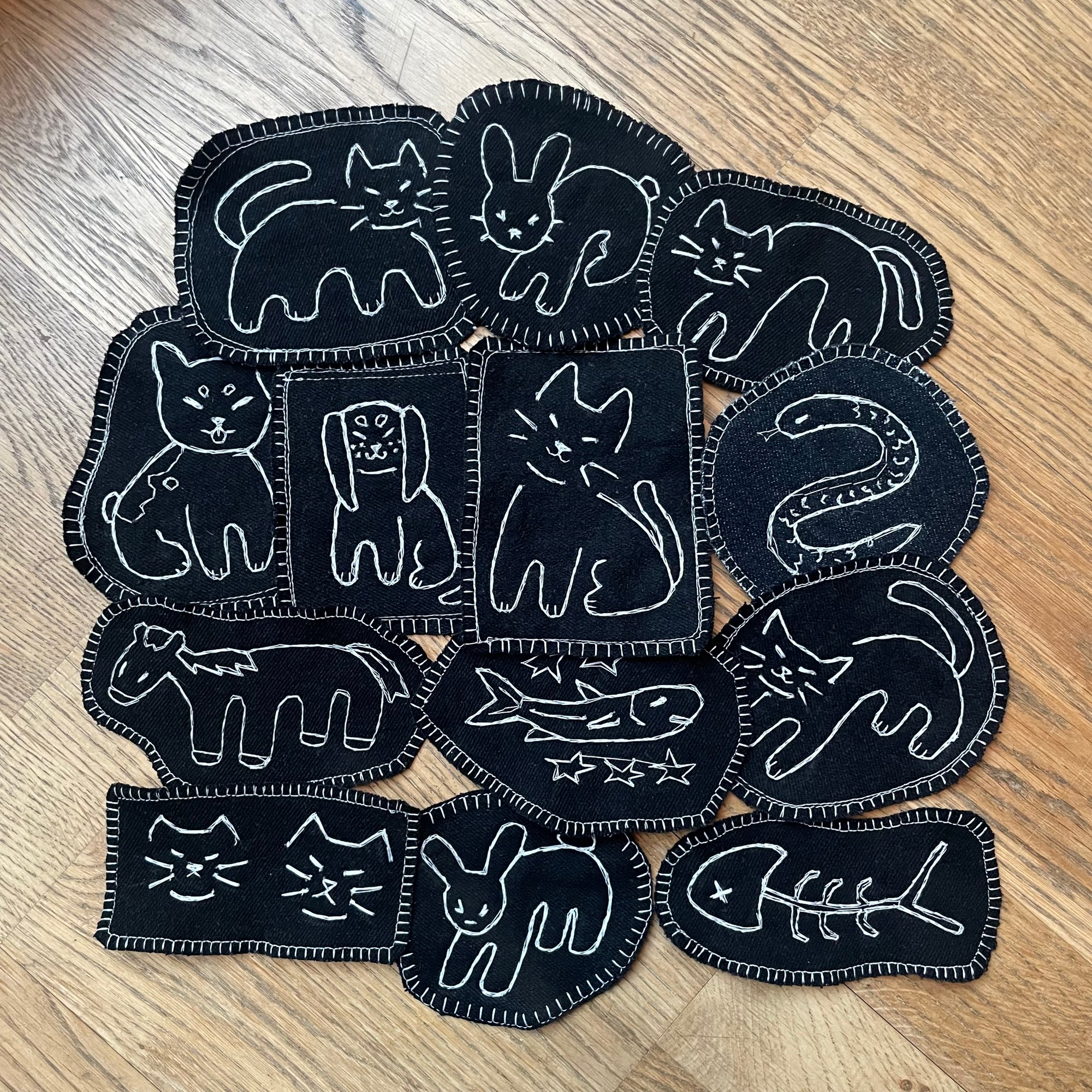 1/1 Black Patches Embroidered on a free motion sewing machine. Please select which patch you would like to purchase. Note: Shades of black may vary.