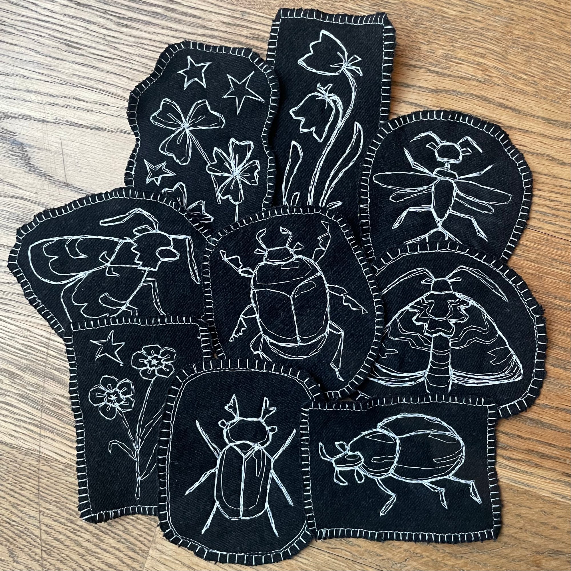 1/1 Black Patches Embroidered on a free motion sewing machine. Please select which patch you would like to purchase. Note: Shades of black may vary.