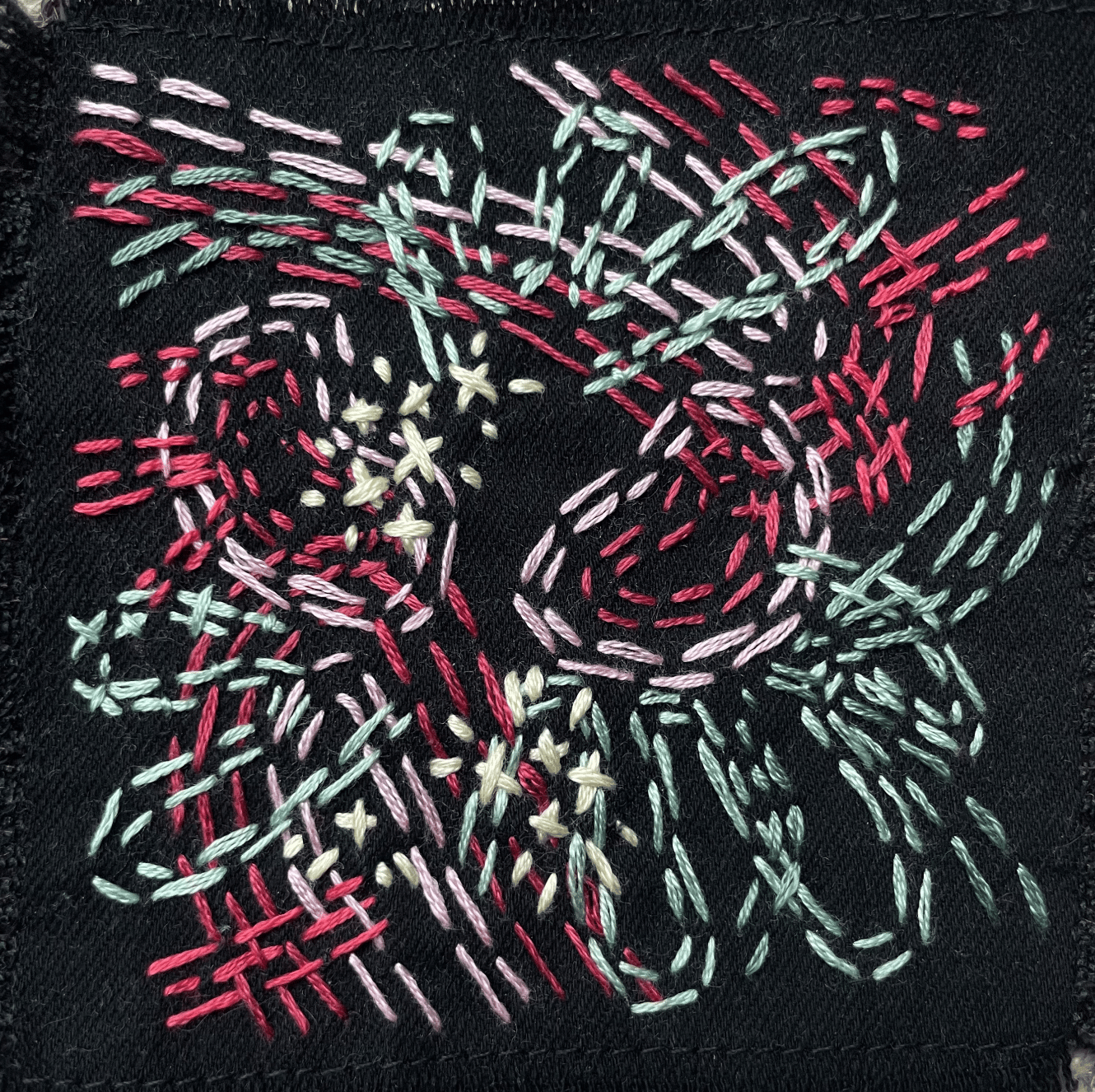 Green, Red and Pink Patch embroidered by hand.