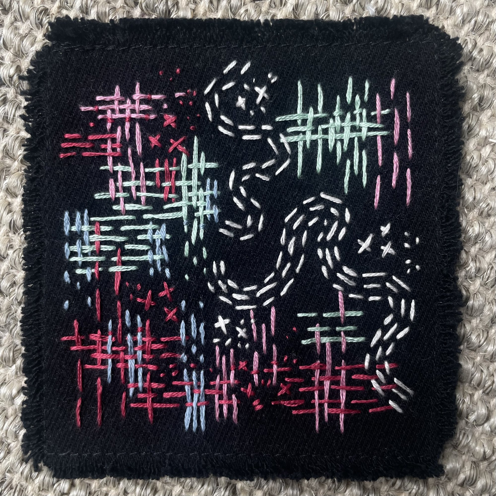 Each patch is made one at a time, so no two items will be the same. Made with second hand fabric and embroidery thread.